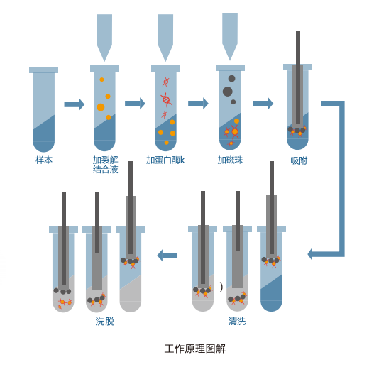 磁珠法提取試劑盒能夠考慮以上綜合因素,配比合適的運行參數,以達到更好的提取效率。